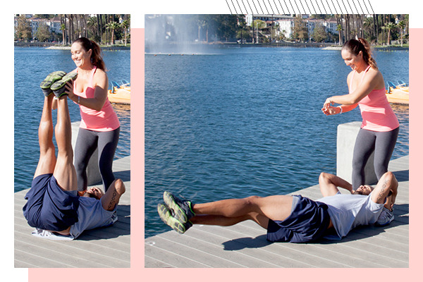 第2步:仰臥在地上,腳著地,然后讓膝蓋彎曲。利用臀部的力量將骨盆抬起,記住速度要適中。當(dāng)骨盆和脊椎成一條直線時停止動作,重復(fù)15次。
